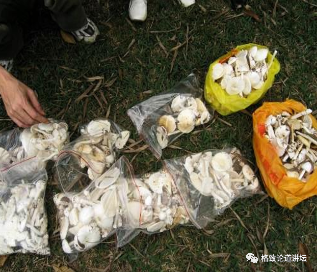 它的产量很高,这张照片上的蘑菇就是我在华南植物园里仅用了两个多小时采集到的。这种蘑菇的毒性是很强的,一个蘑菇就能毒死一个人,如果我们不小心采了这种蘑菇请客人吃,后果就不堪设想了。这种离我们很近而且产量也很大的毒蘑菇,仅仅只是鹅膏属的一个种类。