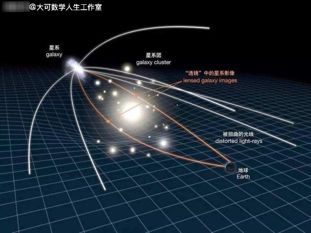 刚刚我们已经说到,在宇宙中存在“光不沿直线传播”的情况。也就是,因为星系或者某个天体的引力作用下,光线到达其周围后发生偏折。