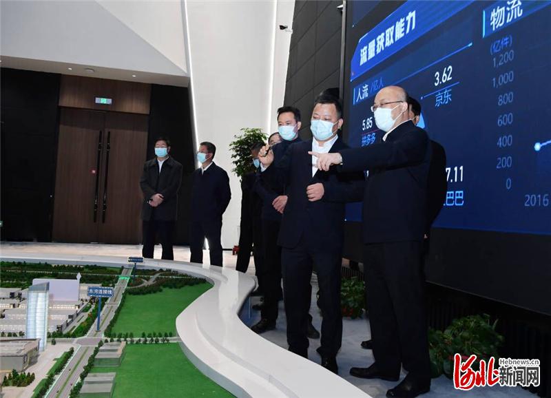 11月11日,代省长王正谱在廊坊市调研检查。这是王正谱来到京津冀固安国际商贸城数字展示中心和服务中心,检查承接京津产业转移、项目投资、商家入驻等情况。 河北日报记者孟宇光摄