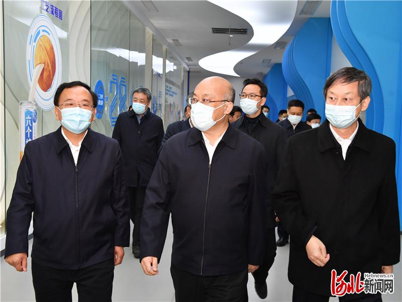 11月9日,代省长王正谱在衡水市调研检查。这是王正谱来到河北养元智汇饮品股份有限公司,察看企业产品展厅,了解生产经营情况。 河北日报记者 孟宇光摄