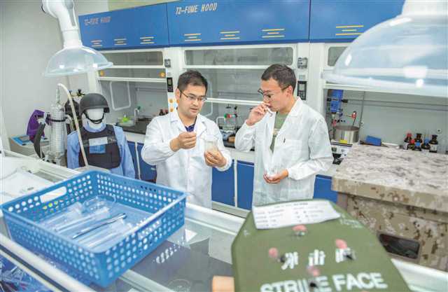 两江协同创新区北京理工大学重庆创新中心现代兵器实验室,科研人员正在进行防爆材料配方调试 张锦辉 摄/视觉重庆