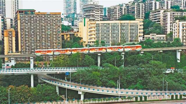 11月9日,轨道2号线“重庆英才”专列行驶在牛角沱至李子坝路段。“重庆英才”专列以“重庆英才·近悦远来”为设计主题,共有6节车厢,整体以漫画形式,在车身上呈现重庆标志性建筑景观,同时融入正在打造的城市新名片,形象展示重庆宜创宜业宜居宜游的良好环境,寓意诚挚欢迎八方英才来渝发展、建功立业。记者 陈国栋 摄影报道/视觉重庆