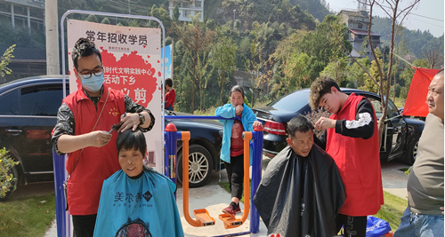 活动中,爱心义诊志愿者们细心为村民们检查牙齿、眼睛,耐心为他们讲解日后所注意事项;爱心义剪志愿者们精心为村民们理下长发、修剪胡须、清理碎发。志愿者们熟练精湛的专业知识、技术和优质、体贴的服务赢得村民们一致好评。