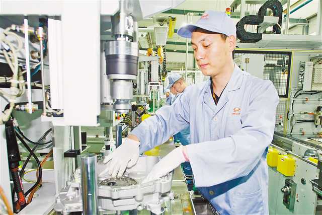 青山工业变速器研发中心,工作人员在生产线上忙碌。(璧山区供图)