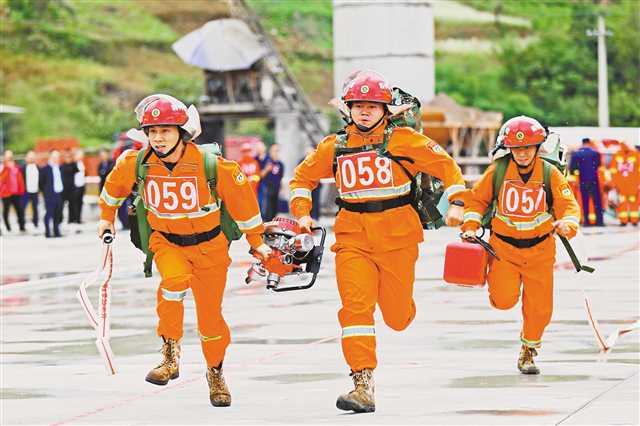 10月14日,重庆市首届国有林场森林消防专业队伍技能比武在彭水举行。此次技能比武设置的项目,既有个人防灭火常识测试,又有单兵GPS、风力灭火机、来复式水枪装备的操作;既有需要团体协作、侧重体能的3公里负重越野,也有侧重于技能的消防水泵、油锯操作。