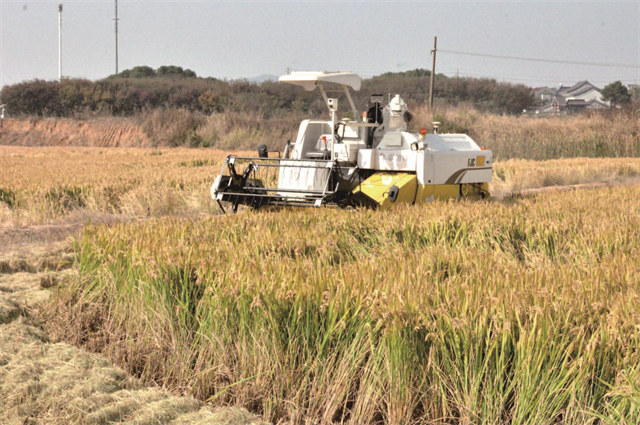 眼下正值秋收时节,记者在溧阳现代农业产业园看到,一台收割机在田间穿梭作业,前进、转弯、倒车,收割机上却看不见操作人员。溧阳市经开区农村工作局工作人员陈学虎告诉记者,无人收割机会自动扫描测绘最优收割线路,只需要通过手机就可以实时监测无人设备的运行。