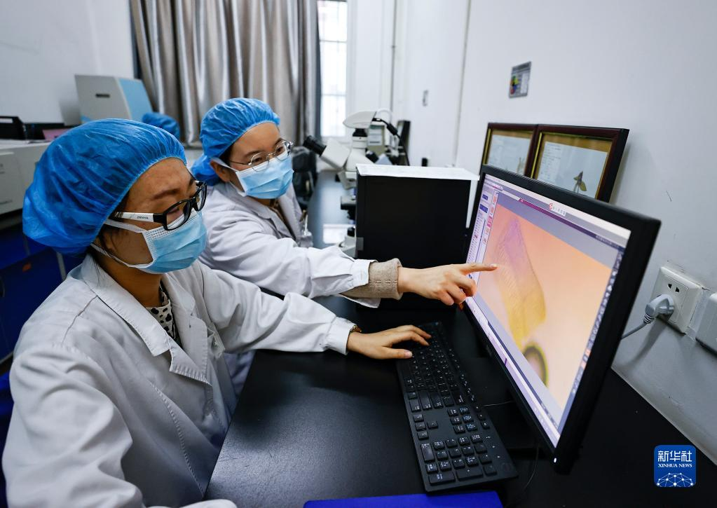 11月12日,宁夏中医医院暨中医研究院中药师在中药鉴定室查看“益气防疫合剂”的检测结果。新华社记者 冯开华 摄