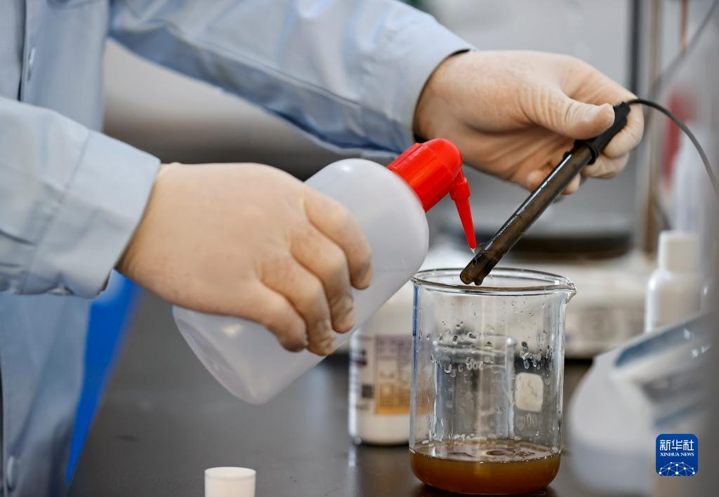 11月12日,宁夏中医医院暨中医研究院中药师在检测“益气防疫合剂”的pH值和浓度,确保药剂安全和疗效。新华社记者 冯开华 摄