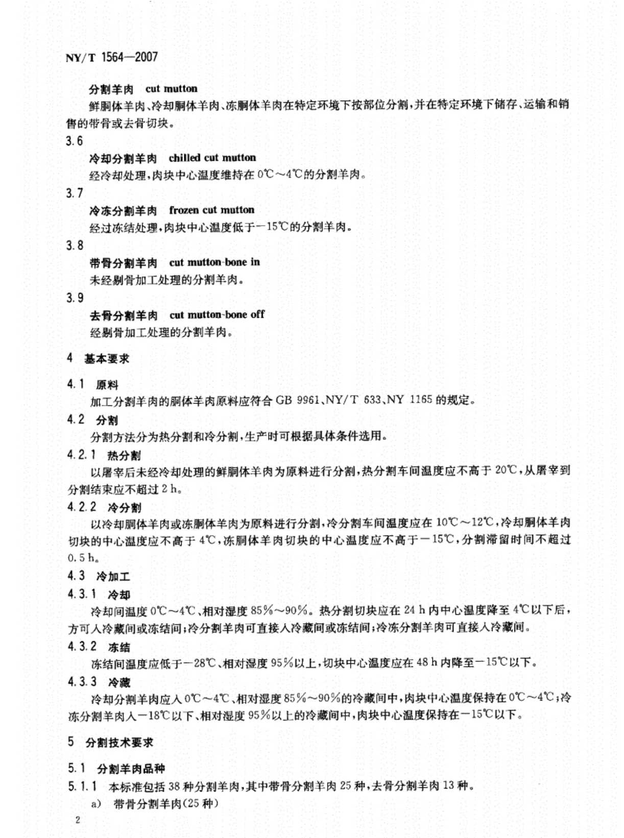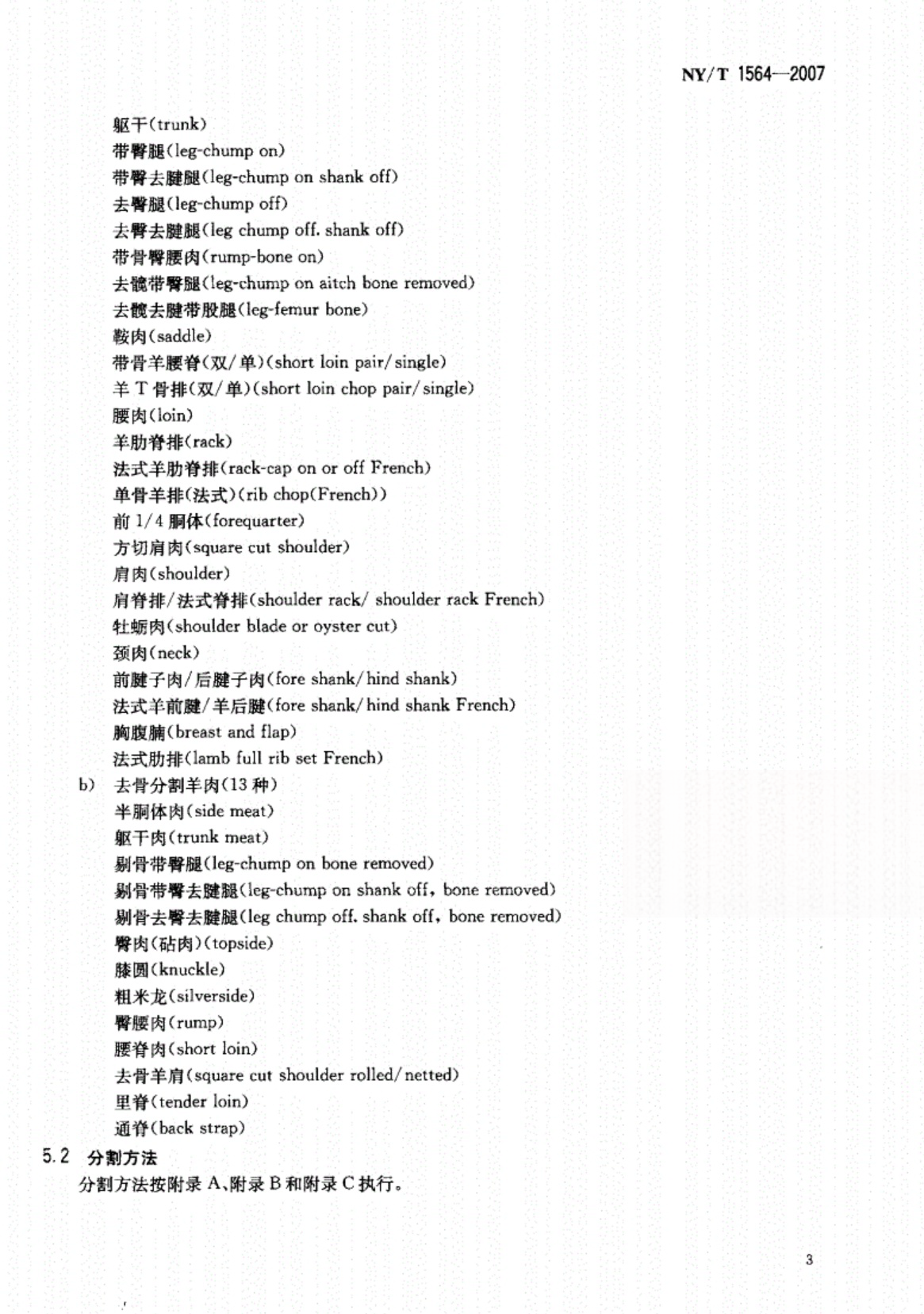 NY/T 1564-2021 《畜禽肉分割技术规程 羊肉》(已上传附件)