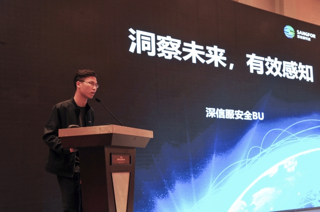 在探索人工智能道路上有一种普遍的共识,即人工智能的发展有三个台阶,从计算智能过渡到感知智能并最终实现认知智能。智能感知将物理世界的信号通过传感器,借助语音识别、图像识别等前沿技术,映射到数字世界,再将这些数字信息进一步提升至可认知的层次,比如记忆、理解、规划、决策等等。在这过程中,智能感知技术的应用和成果转化至关重要。围绕这一话题,大会主持冯豪执委分别邀请了三家国内外相关领域著名的公司进行了技术交流和产品成果介绍。浙江大华技术股份有限公司解决方案工程师伍戈展示了新型智慧城市架构 ——大华HOC(城市之心)的基本框架,解读了大华全感知应用产品及场景演示,并对未来人工智能的发展提出了设想。深信服科技股份有限公司浙江安全部主管李哲从安全感知的角度详细阐述了信息系统面临的新的安全威胁及挑战,介绍了深信服不断升级迭代的技术体系和洞察未来的创新应用。华为技术有限公司浙江省安平解决方案总监易宁普以“AI+云,开启智能安防时代新纪元”开篇,介绍了华为端云协同,全网智能的CloudIVS视频云解决方案,展示了华为全系列摄像机新产品。三家公司的技术交流和产品介绍让在场的与会人员享受了一场智能感知的盛宴。