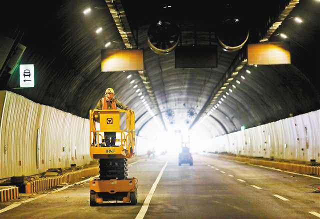 9月22日,土主中梁山隧道基本完工,技术工人正在进行最后的收尾施工。