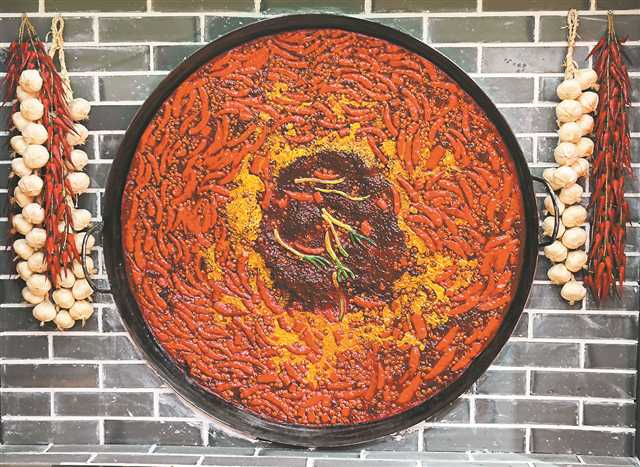 鲜红的辣椒、青绿的花椒、橙红的牛油,更有无数五彩斑斓的辛香料,随着咕嘟咕嘟的亮泡从锅底冒出,直至红油翻滚的鲜香白雾,袅袅氤氲周遭一切。