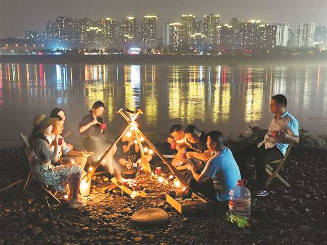 九龙坡区长江边,江滩野炊也少不了火锅。