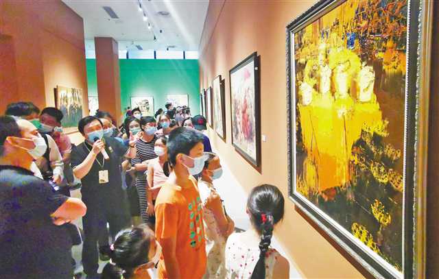 赏画展 10月2日,重庆美术馆,“时代之光——第五届中国油画展”正在此展出。该馆举办“馆长带你看美展”活动,由馆长为观众讲解作品,让观众更好欣赏全国美展的精品力作。记者 熊明 摄/视觉重庆