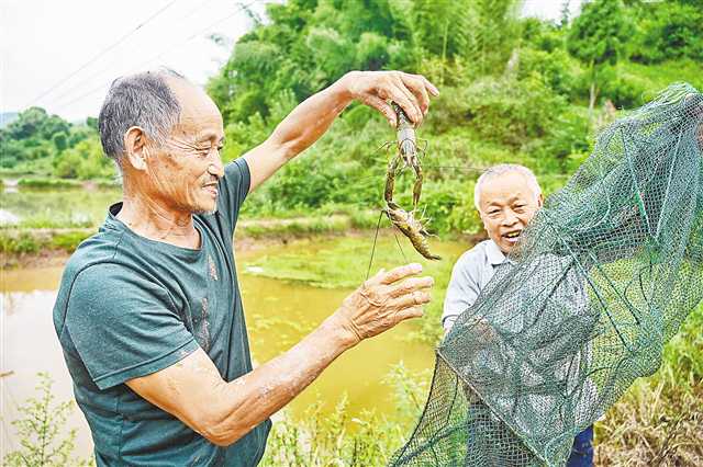 近日,渝北区茨竹镇同仁村,村民正在收获肥美的澳洲淡水龙虾。记者 万难 摄/视觉重庆