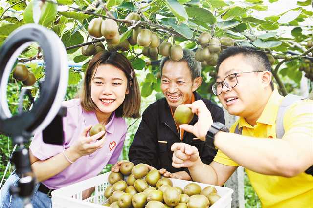 近日,万盛经开区黑山镇万家山猕猴桃园,青年志愿者直播销售黑山猕猴桃。特约摄影 曹永龙/视觉重庆
