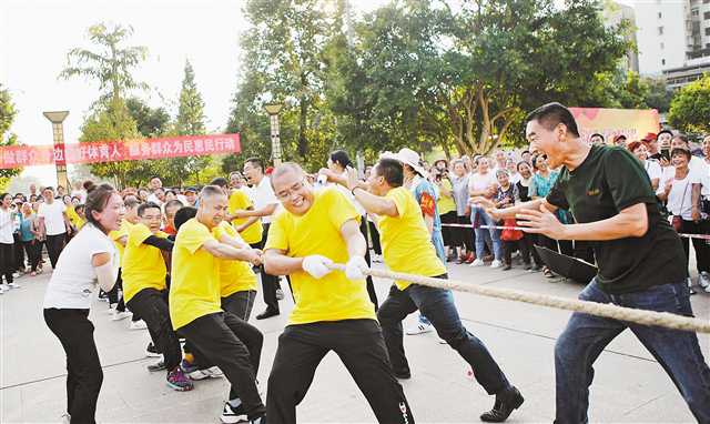 9月22日,永川区青峰镇农民运动会现场,运动员进行拔河比赛。现场呐喊声和欢笑声此起彼伏,大家在运动中享受丰收的喜悦。特约摄影 陈仕川/视觉重庆