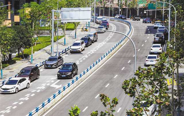 9月15日,记者在两江新区康美街道九曲河社区远洋九公子小区南门外看到,这条名为礼洁路的双向四车道已于8月13日正式通车。随后,记者又来到8月11日通行的两江新区悦华路(H5-1二标段),该路段附近有礼嘉实验小学和两江巴蜀中学,道路的及时通行让周边的学生上学不再绕行。