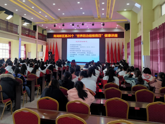 春季是各种呼吸道传染病的高发季节, 为了提高大中专院校学生对传染病防控知识的知晓率,防止呼吸道传染病在校园内聚集性发生, 3月12日,正值“世界防治结核病日”宣传日到来之际,市健康管理协会联合南湖新区卫健局、教体局、湘北女校举办了健康科普知识专题讲座——“怎样预防传染病”。来自南湖新区各中小学校医、保育员、青少年学生代表等200多人参加。