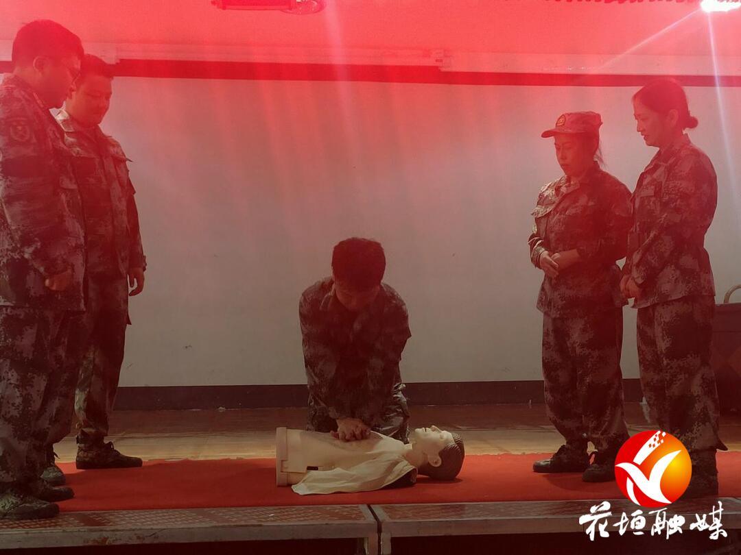 本次在岗训练分理论学习和民兵基本技能训练两大部分,理论学习主要开展政治教育及战地急救知识;民兵基本技能训练主要开展了现场外伤伤情处理、心肺复苏技术的演练、伤员后送、卫生防疫等科目的训练。