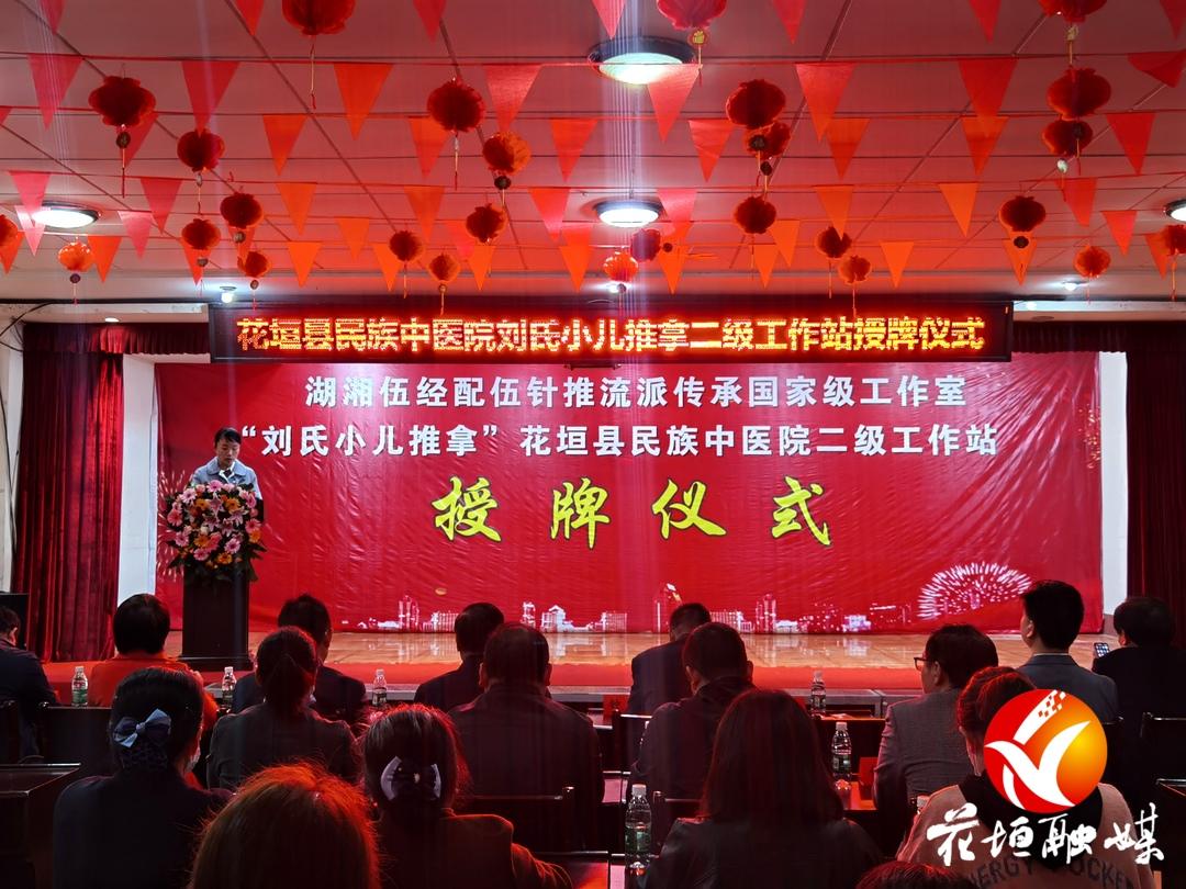 10月14日,湖湘五经配伍针推学术流派传承工作室“刘氏小儿推拿”二级工作站落户花垣县民族中医院。花垣县人民政府副县长于亮出席授牌仪式。