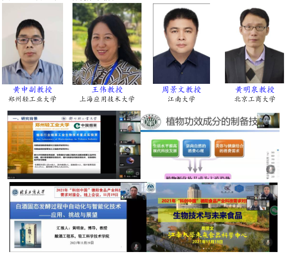 技术交流分享环节由河南省化学会副理事长侯益民研究员和四川省化学化工学会理事长胡常伟教授主持,河南省香精香料工程技术研究中心主任、郑州轻工业大学食品与生物工程学院的黄申副教授,上海应用技术大学香料香精与化妆品学部的王伟教授,江南大学生物工程学院、粮食发酵工艺及技术国家工程实验室的周景文教授,北京工商大学轻工科学技术学院酿酒工程系的黄明泉教授,分别做了题为《烟草源微生物的分离、筛选与应用》、《植物功效成分在化妆品和保健食品中的应用》、《白酒固态发酵过程自动化与智能化技术:应用、挑战与展望》、《生物技术与未来食品》的食品产业科技分享报告。