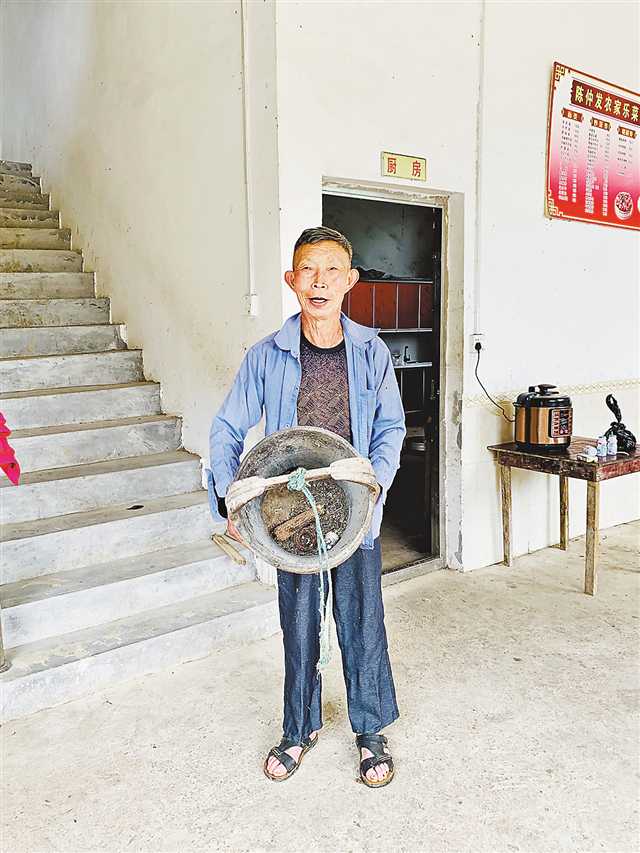 平安乡的饮水曾是个大问题,水桶是村民家中必备之物。而咏梧村三社村民陈泽辉家的水桶如今放在二楼的阁楼上,当他搭着楼梯把水桶取下来时,记者看到上面挂满了蜘蛛网,水桶里也满是尘土。