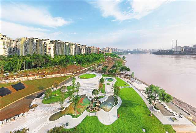 9月9日,南岸南滨路大鱼海棠广场正进行收尾施工,预计10月向市民开放。