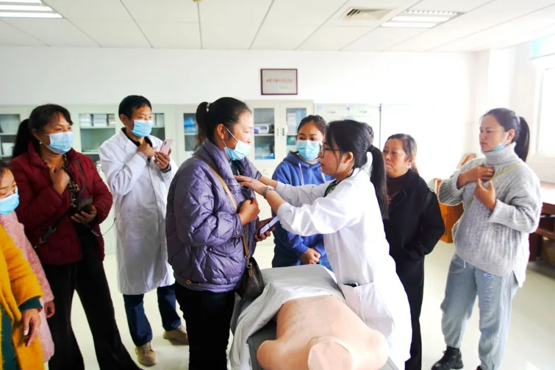 仪式结束后,紧锣密鼓的培训课程拉开序幕。首先从医院建设布局、查房规范与要求、学习纪律、食宿作息、带教安排等对学员们作了介绍。随后各位讲课者从病历书写,体格检查、洗手、换药、戴手套等基本技能;心肺复苏、止血包扎、农药中毒、胸痛急救等抢救技能;高血压、糖尿病、肾病、慢阻肺等慢病管理;肺炎、结石、手足口病等常见病的诊治,展开全方位培训。一位学员一位带教老师,25堂理论操作课、16组次的教学查房涉及全基础学科,遵循今天理论,明天查房,实践与理论紧密结合的方式,力求让村医们感兴趣,听得懂,既实用,课后又能及时消化。