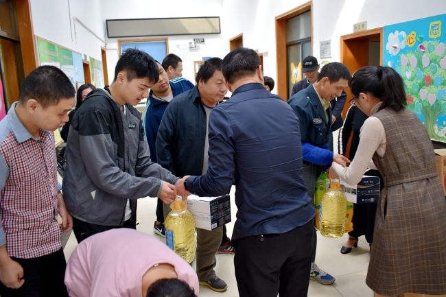 在参观交流后,学会党支部的党员们给大家送上了米、油、牛奶等慰问品,并向中心工作人员的爱心和耐心表示了崇高的敬意。服务中心用2盆残疾人士们亲手种植的多肉盆栽和灿烂的笑容表达谢意。