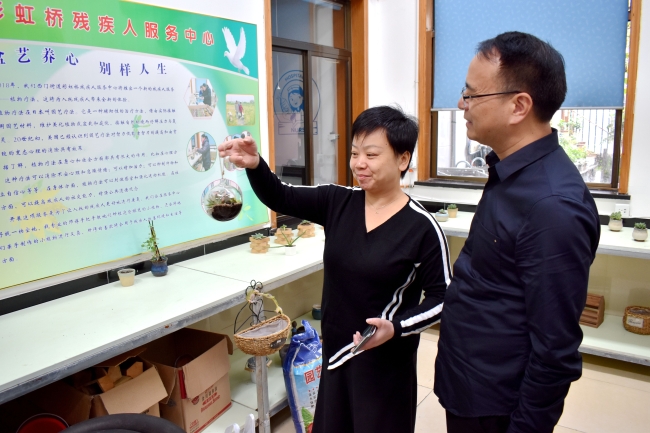 西门街道彩虹桥残疾人服务中心林亚珍主任介绍,中心现阶段配备了2名工作人员,已接纳了街道内9名残疾人士。在工作人员耐心教导下,他们通过简单的手工劳动、花草种植来充实生活,获得微薄收入。