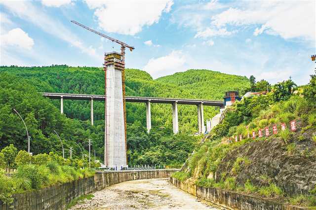 9月3日,渝湘高铁重庆至黔江段石梁河双线特大桥4号墩顺利封顶。