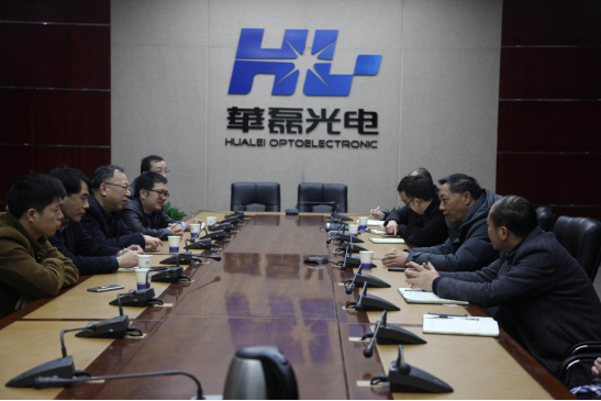 1月28日上午,市工信局党组成员、副局长刘国清一行到华磊光电公司调研,考察智能制造及项目建设等工作,华磊光电公司董事长、党委书记黄奂果、市中小企业服务中心周建军、市工信局投资科负责人等参加调研座谈会。
