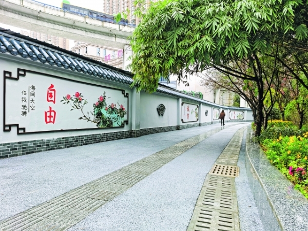 新建排水管线、改造人行道透水混凝土路面、铺设石材盲道、新建花池、新增绿植景观、安装路灯、打造社会主义核心价值观主题宣传围墙……今年6月下旬开始,总投资100多万元的提升改造工程有序开展,曾经困扰附近居民出行的“老大难”问题得到有效解决。