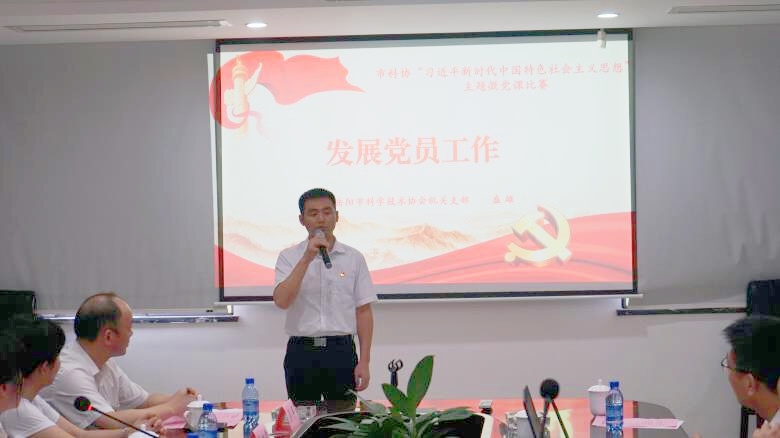 活动伊始,全体党员在党总支书记唐慧的带领下,面对鲜艳的党旗,高举右手庄严宣誓,重温入党誓词。随后,开展了“习近平新时代中国特色社会主义思想”主题微党课竞赛,9名参赛党员分别以“共产党员是什么样的人”“科协发展,奋斗有我”“奋斗的人生最美丽”等为题,结合工作和生活实际,用生动的语言、感人的事例、满腔的热情给大家带来一堂堂精彩纷呈的微党课展演,赢得大家阵阵掌声。经过现场投票,共评选出一等奖1名 ,二等奖2名,三等奖6名。