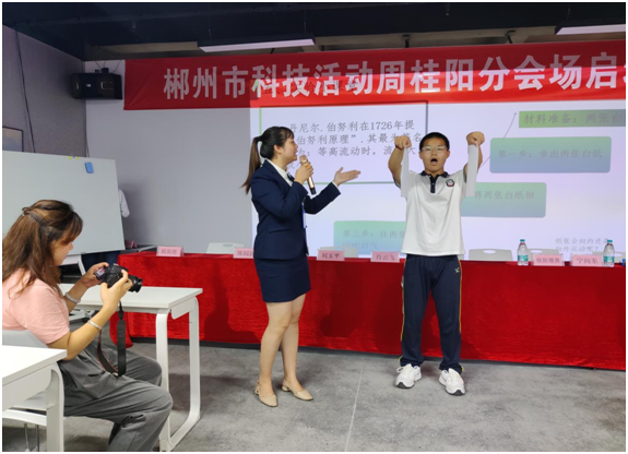 5月23日,我市科技活动周桂阳分会场启动仪式圆满举行,市科技局参加市科学技术普及基地——翔龙航空航天科普体验中心与桂阳展辉中学联合开展的“雏鹰未来筑梦蓝天”科普活动并向与会学生们赠送学习用品。