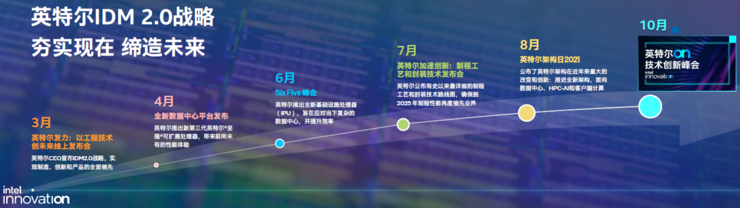 2021年3月,基辛格就宣布了英特尔IDM2.0战略,实现非自主生产,扩大合作生产步伐;4月,英特尔推出了第三代英特尔至强可扩展处理器;6月,Six Five峰会上,英特尔全新基础设施处理器IPU面世;7月,基辛格又公布了英特尔有史以来最详细的制程工艺和封装技术路线图,比如10nm将命名为Intel 7等,并表示英特尔要在2025年回归制程的领导力;8月,英特尔架构日公布了第一个高性能混合架构Alder Lake,全新的高性能独立GPU架构,全新IPU架构,以及数据中心GPU架构的详细信息;10月28日,英特尔发布了10nm制程的第12代酷睿CPU处理器,以及新一代锐炫Alchemist高性能独立显卡SoC系列,甚至和微软展开合作,将为Windows 11带来完整的数据科学工具链。