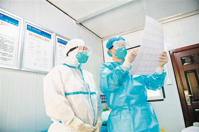 凌晨3点40分,两名病人抵达医院,做CT、查血、复核核酸检测……接诊工作有条不紊地进行着。