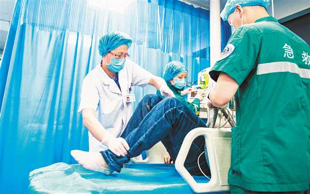 8月16日,市中医院急诊科,李安和同事正在抢救室检查病人病情。