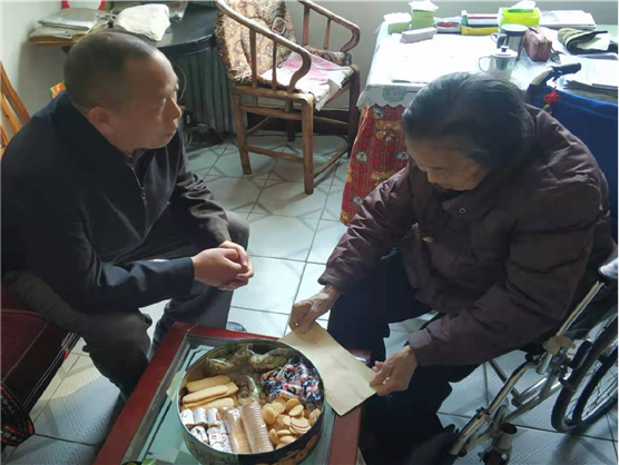 二级调研员肖云飞来到局离退休干部王燕珠和邓道培老党员家中,亲切地与他们拉家常,了解他们的生活、身体和家庭情况,并为他们送上慰问金和节日的祝福。