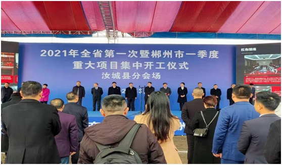 3月1日上午,2021年湖南省第一次重大项目集中开工仪式举行,14个市州视频连线,云端同步,场面壮观。当天,湖南(沙洲)红色文旅特色产业园湖南梦洁汝城沙洲半条被子家纺科技创新产业园项目(以下简称项目)开工仪式在汝城沙洲举行。郴州市人民政府副市长贺遵庆宣布项目开工,湖南梦洁家纺股份有限公司董事长姜天武,汝城县委副书记、县长黄志文出席并致辞,县委副书记何青松主持开工仪式。