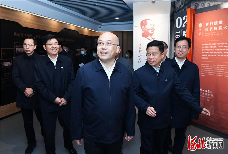 11月24日,代省长王正谱在秦皇岛市调研检查。这是王正谱走进燕山大学校园参观校史陈列馆,了解学校历史沿革、学科建设、人才培养等情况。 河北日报记者孟宇光摄