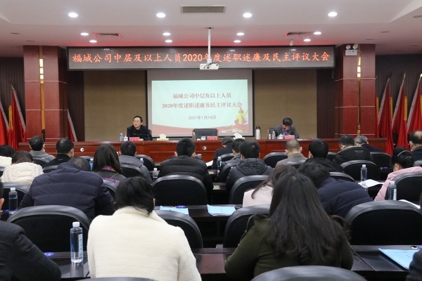 1月14日上午,福城公司中层以上人员2020年度述职述廉及民主评议大会在管委会7楼会议室顺利召开。此次大会由区党委领导班子及副处以上市管干部、区直部门正科及副科实职工作人员、园区企业代表、福城公司(元贞公司)全体员工组成了近百人的评议组,本着公平公正公开的原则对福城公司14名中层及以上管理人员的述职述廉进行了评议和评分。参评人员既谈成绩和亮点,也谈问题和不足,达到了相互交流、相互促进的良好效果。