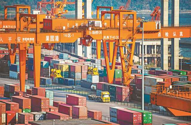 果园港码头龙门吊正在吊装集装箱。记者 齐岚森 摄\视觉重庆