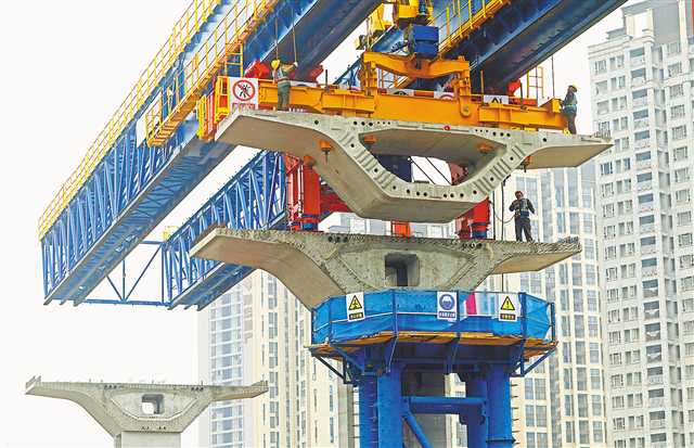 2021年3月22日上午,轨道十八号线金鳌山站——跳磴站区间首段拼装梁顺利起架。记者 罗斌 摄/视觉重庆