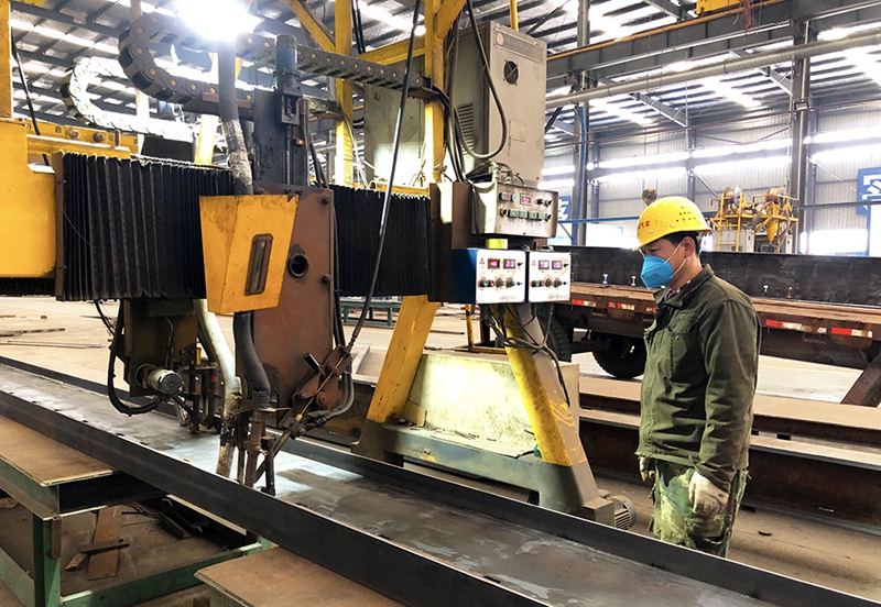 在位于邳州高新区的徐州华邦专用汽车有限公司车间内,切割、焊接组装等生产线上,工人们正在进行不同的生产加工流程操作,一派忙碌的生产场景。