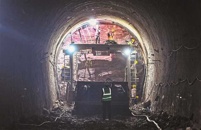 重庆轨道交通十八号线工程土建一标项目施工现场,工人正在隧道里作业。首席记者 龙帆 摄/视觉重庆