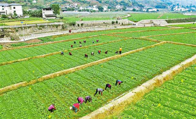 11月24日,在綦江区东溪镇永乐村的高标准农田,村民们正在田间劳作。