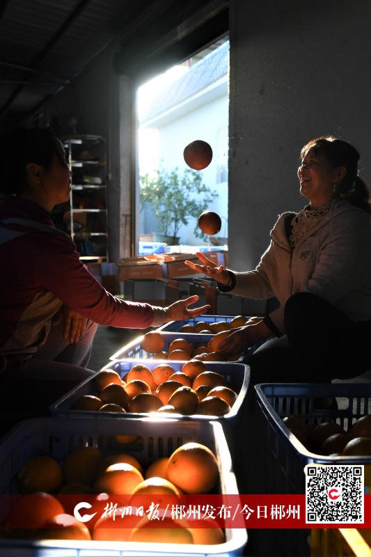 采摘、搬运、装箱……果农们忙得热火朝天,大家沉浸在丰收的喜悦中。“我种植了50余亩脐橙,11月8日采摘了第一批果。目前销售情况不错,卖了一万多斤了,主要通过网上销售发往全国各地。”该农庄负责人周剑带着满脸丰收的喜悦介绍。