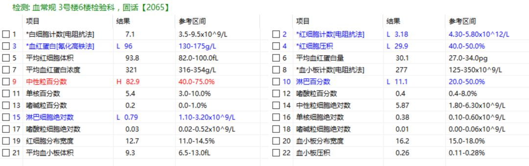 血常规报告通常是密密麻麻的一大张,有超过20个条目,拿到血化验单后有点懵。怎么判断自己的结果是否正常?某些指标出现箭头会担心要不要紧?
